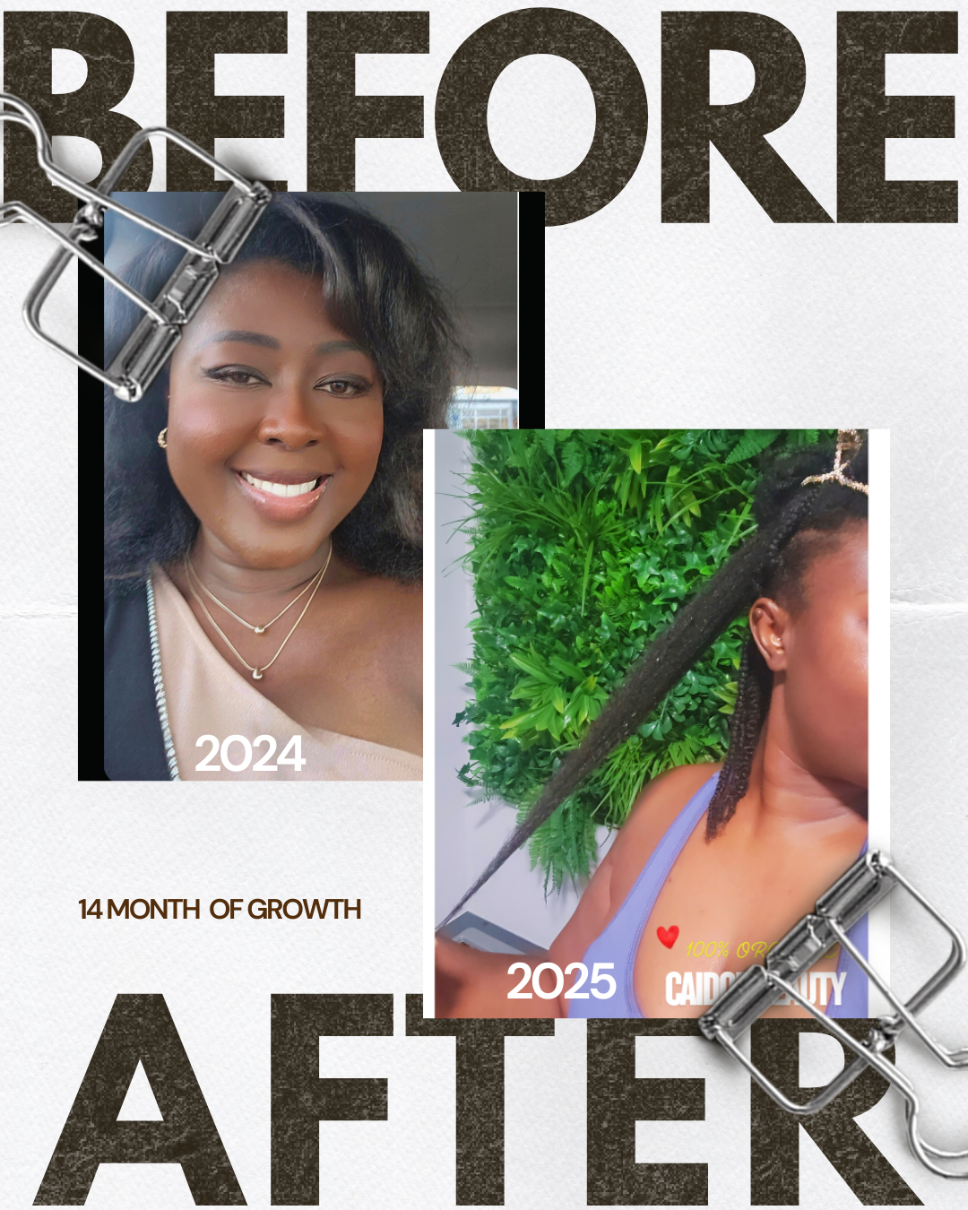 Be kind to you hair. You can absolutely grow long, thick and healthy hair. Put the right nutrients and moisture in, seal your ends and watch how luscious your hair grows. Caidor Beauty will support your hair growth journey in all forms.